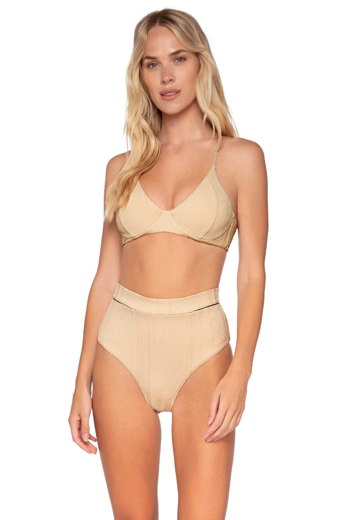 Committed to sustainability from the ground up. From recycled packaging, fibers, and even earth-inspired prints. Because we think swimwear should help clean up our waters, not pollute them.